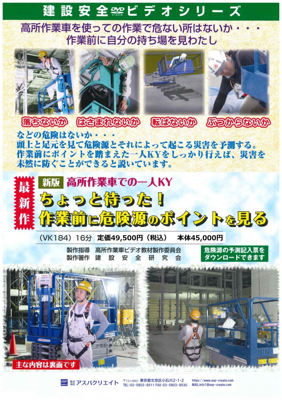 本DVDは、8つの職務についてそれぞれ、一方通行の指示や呼びかけではなく、作業員達と情報を共有しリスクを減らすための意見を出し合い、意思の疎通を図ること=リスクコミュニケーションの実践術を盛り込みながら解説します。