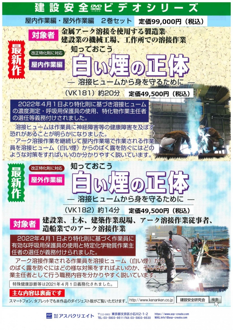 アーク溶接作業をされる作業員を溶接ヒューム(白い煙)のばく露から防ぐにはどのような対策をすればよいのか、そして作業主任者として行う職務内容を分かりやすく説いています。