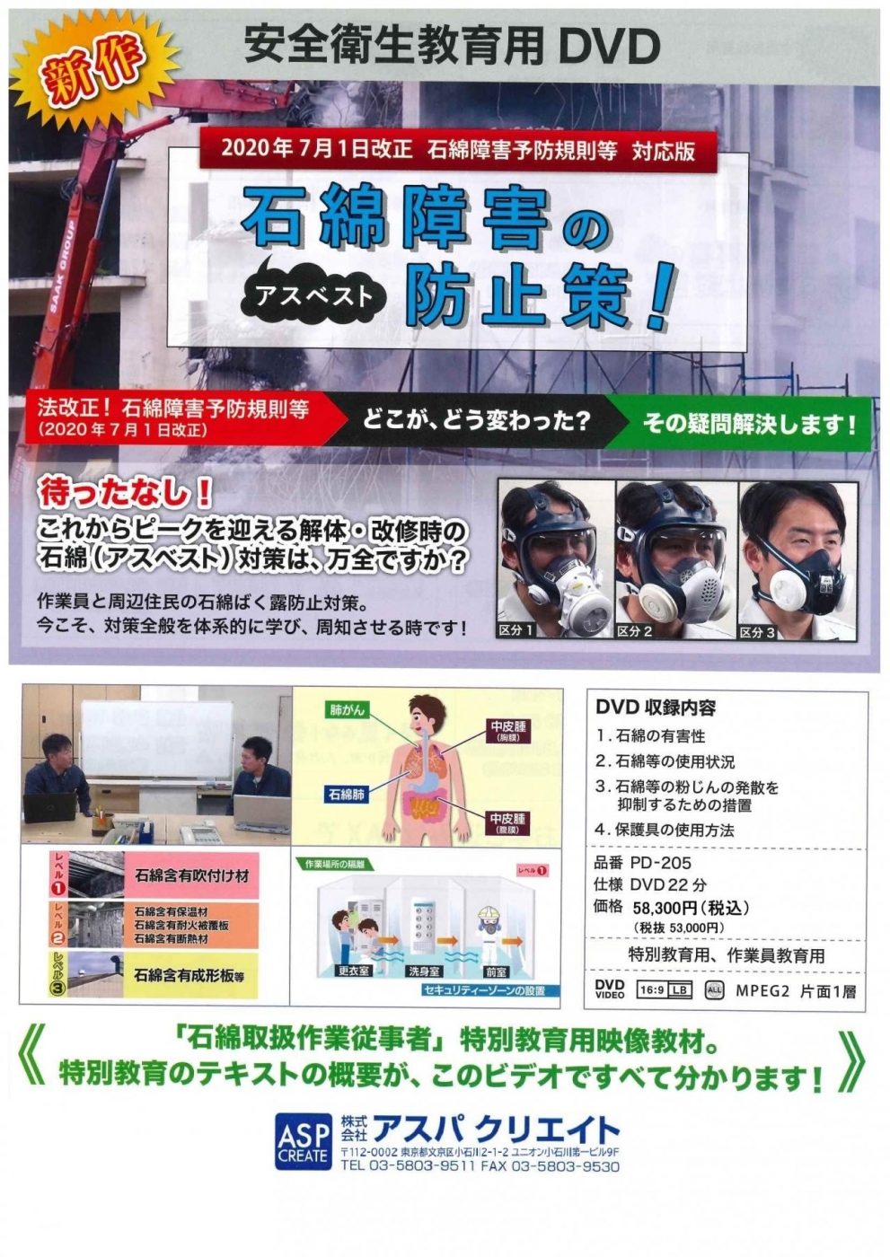 「石綿取扱作業従事者」特別教育用映像教材。特別教育のテキストの概要が、このビデオですべて分かります。