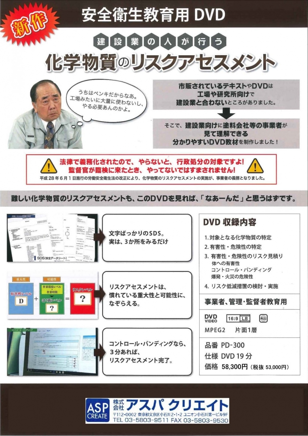労働安全衛生法の改正により、化学物質のリスクアセスメント実施が、事業者の義務となりました。しかし、これまでの市販テキストやDVDは工場や研究所向けで、建設業とあわないところがあります。