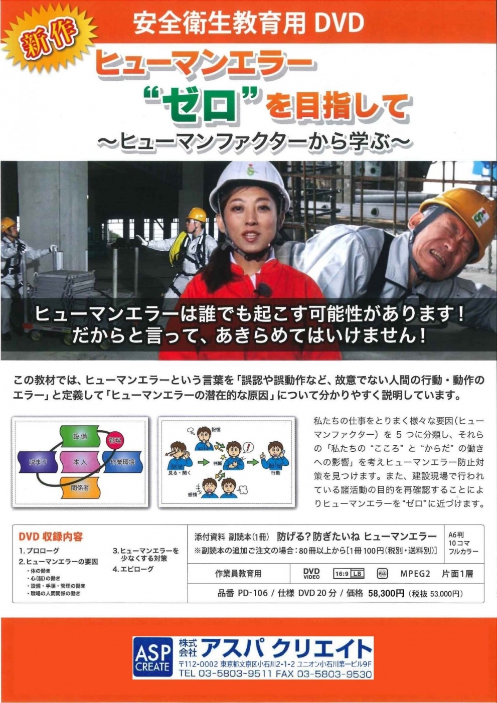 人間の注意力には限界があり、「作業中、ずっと安全に注意を払い続けなさい」は無理です。 本DVDは、不注意による死亡災害が多発していること、なぜ人間は安全に対して不注意になるのか、事例と具体的な対応策などについて実写とアニメで解説します。