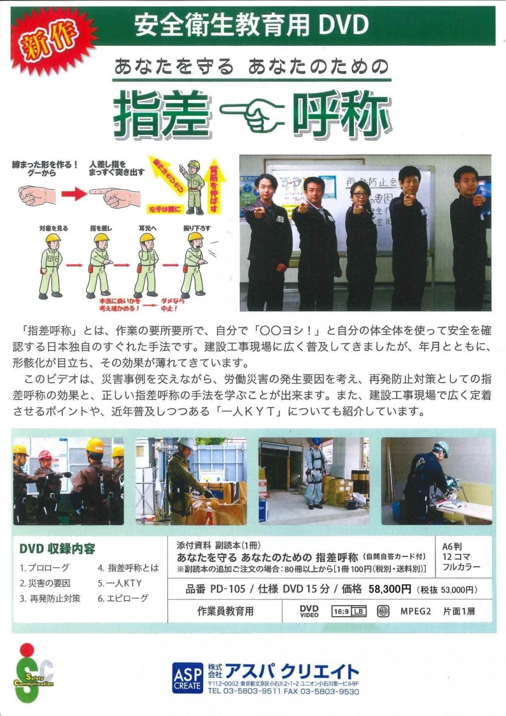 「指差呼称」とは、作業の要所要所で、自分の体全体を使って安全を確認する日本独自のすぐれた手法ですが、近年、形骸化が目立ち、その効果が薄れてきています。 このDVDは、災害事例を交えながら、労働災害の発生要因を考え、再発防止対策としての指差呼称の効果と、正しい指差呼称の手法を学ぶことが出来ます。