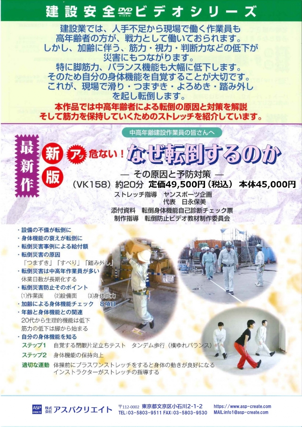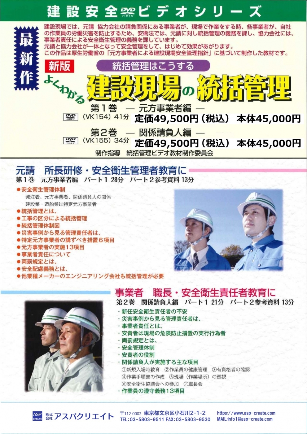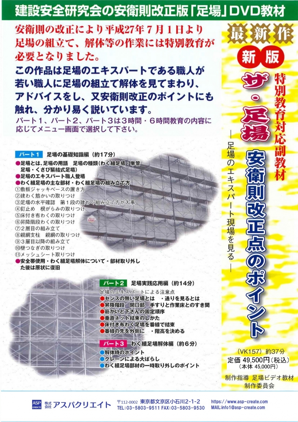 本DVDシリーズは、改正内容のポイント解説、そして改正に従って足場組立・解体作業を安全に進めるためのポイント・手順を詳しく具体的に解説するDVD教材です。