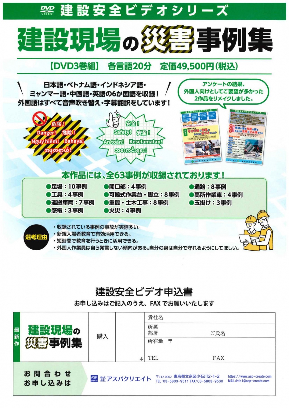 お客様からのアンケートの結果、外国人作業員向けとしてご要望の多かった『その行動は危険だ あなたは気づきましたか』と『現場に潜む危険を探る あなたは危険にびん感ですか』の2作品をリメイクしました!
