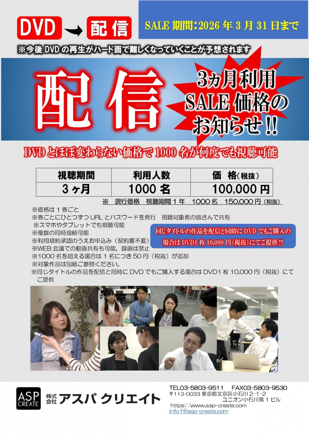 平素よりアスパクリエイトの映像教材をご利用くださり、誠にありがとうございます。